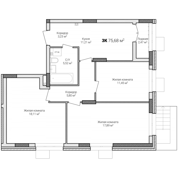 Дом №3, этаж 1, кв 107