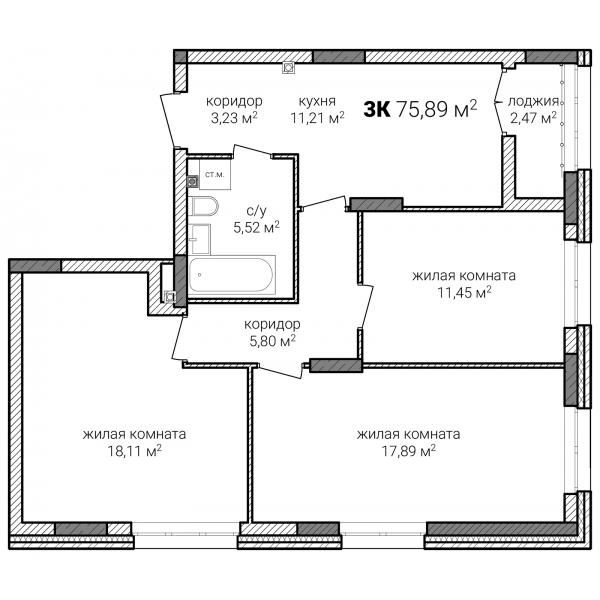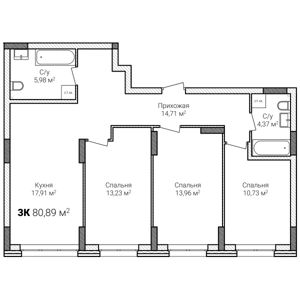 Трехкомнатная -